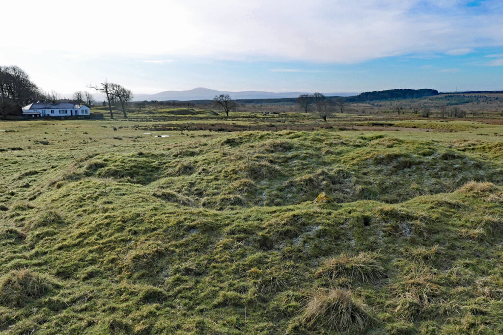 From the drawing room of Climpy House, Robert and Mary Crawford could enjoy a commanding view across the elegant grounds of their estate. Parkland sloped down to a walled garden, a substantial ornamental pond, and a drive that curved to the gatehouse. At a respectful distance beyond the wooded perimeter of the grounds, they might observe the smoke and activity from the lime kilns and coal mines that provided their income, Further out, set within moss and moor ,were the houses of their workforce, and on the distant skyline, the outline of Tinto Hill.