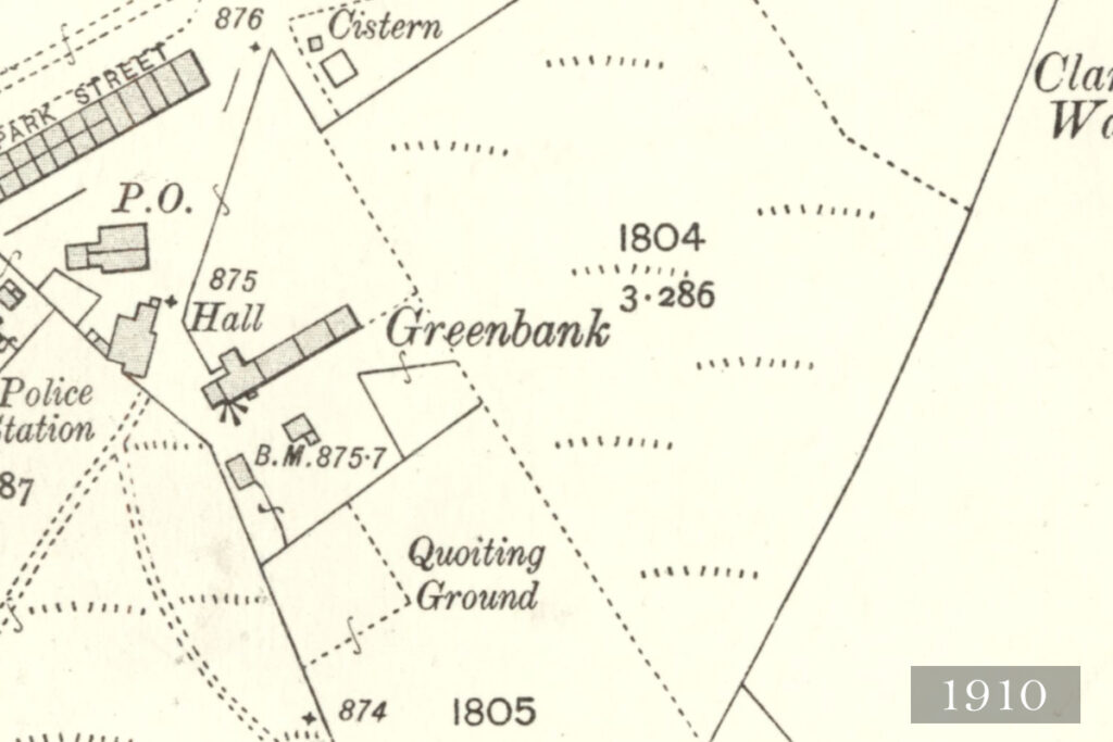 It seems that the old farmstead at Greenbank lay unoccupied for a period, but was reconstructed as a grocery shop sometime in the 1870’s, offering an alternative to the company store. It was a number of years before William Kechans of Greenbank was successful in securing a licence to sell alcohol in his store, although it was recognised that grocer’s carts calling at the village surreptitiously brought drinks orders in from licensed premises in Carnwath or Forth. In addition to carts, and some small-scale shops within the rows, West Calder Cooperative Society opened a branch in Haywood in 1894. As a licensed grocers however, Mr & Mrs. Kechans played a special role at the heart of the community; catering for events, and releasing land close to the Greenbank store as a quoiting green.
