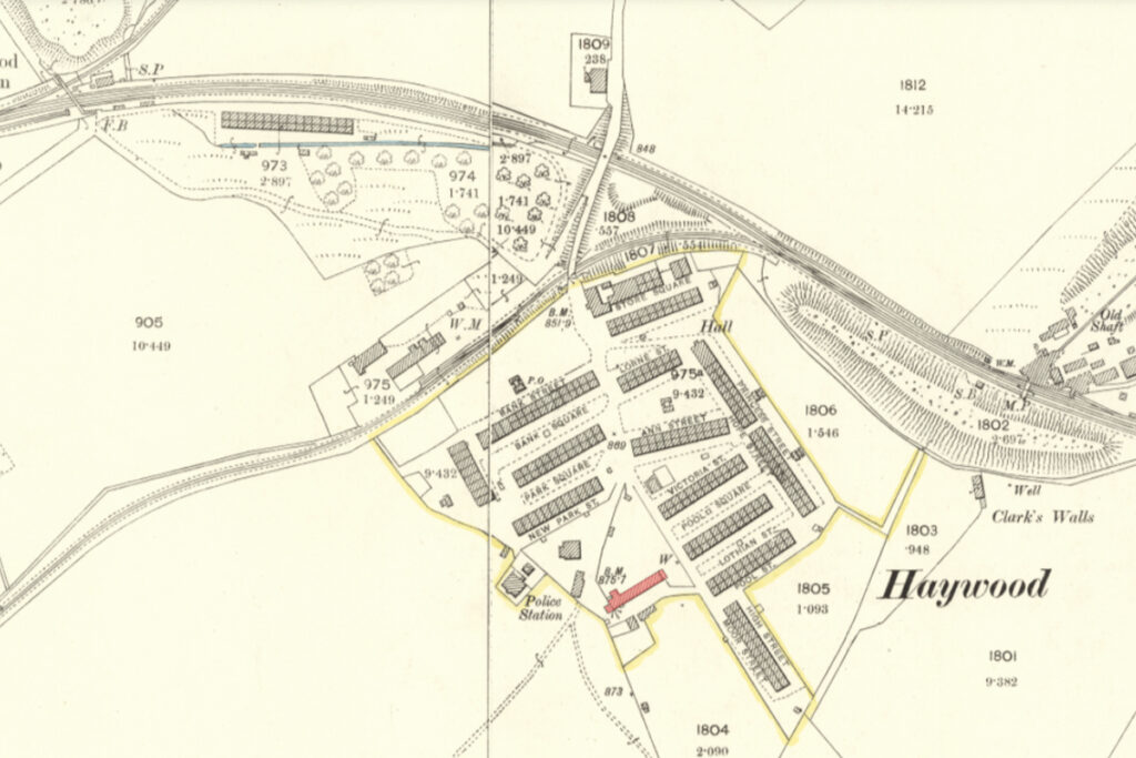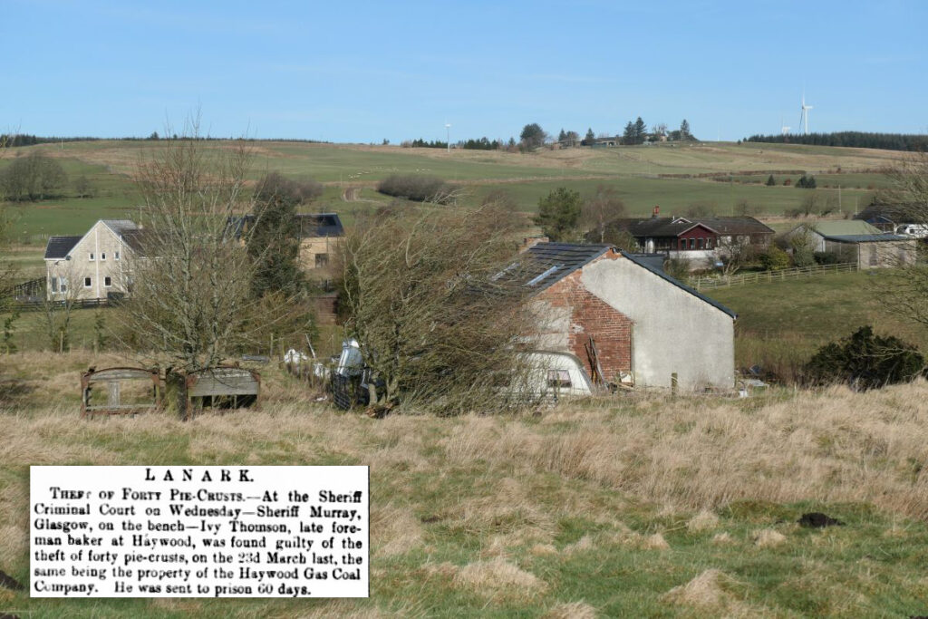 Output of gas coal declined during the 1890’s, causing much hardship, and leading to a significant decline in the population of the village. The closure of the last of the Haywood Gas Coal Co.’s pits was announced in 1901, and press articles proclaimed that “the village is practically doomed”. About half of the rows in the villages, which had been unoccupied for some period, were demolished at around that time, and the remaining houses sold. It seems however that many still held great affection for the old village, and some miners finding work at the coal pits of Wilsontown and Climpy, or the oil works of Tarbrax chose to remain in the rows at Haywood. The County Council served a closure order on slum property at Haywood sparking, in 1926, a vigorous campaign that new council housing should be built at Haywood rather than at Forth, as this was more central to employment opportunities at that time. The council resisted the plea, perhaps having insight that Tarbrax oil works were destined for imminent closure.