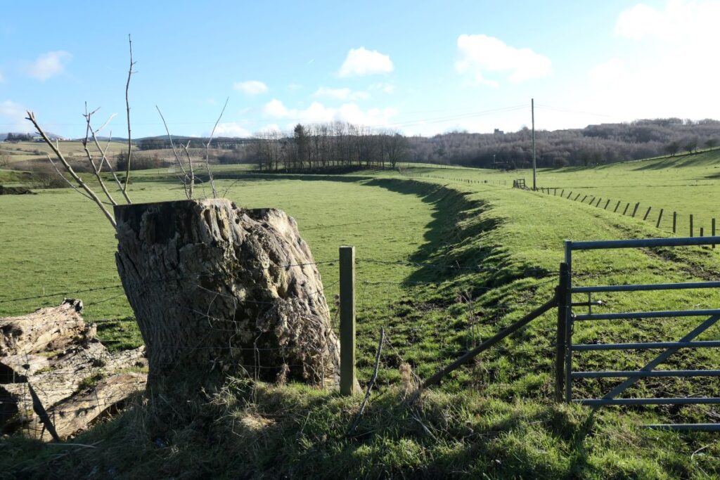 Today, the low curving railway embankment still makes its mark on the landscape, and the faint outline of the rows can just be made out in the irregularities of the land surface. Very little else has survived as a reminder of a short-lived mining enterprise that once supplied gas works throughout Britain.