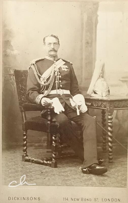 This photograph on the left shows Sir Simon MacDonald Lockhart (1849-1919), the 5th Baronet of Lee. He was a professional soldier, and served with the Life Guards, seeing action in Egypt in 1882 during the nationalist uprising against British/French control of the country, for which he was awarded the Egypt medal and Khedive Star, later becoming a Brigadier and a member of the Victorian Order, and Colonel of the Lanarkshire Imperial Yeomanry