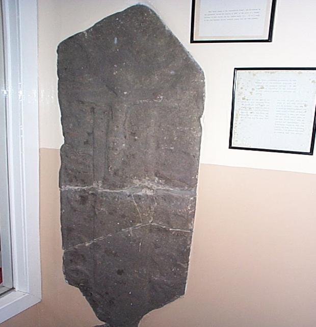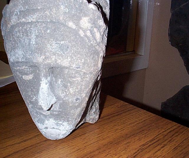 The next item for consideration is a corbel head. What was a corbel head? A corbel head was a stone support for a roof beam and it jutted out from the side wall of the church. The standard of workmanship is very high and I would think that it falls into the 14/15th century era. It is not quite so crude and heavy as much of the work of the period of Archbishop Blackadder. Could this head be of St Mary after whom the church was called?