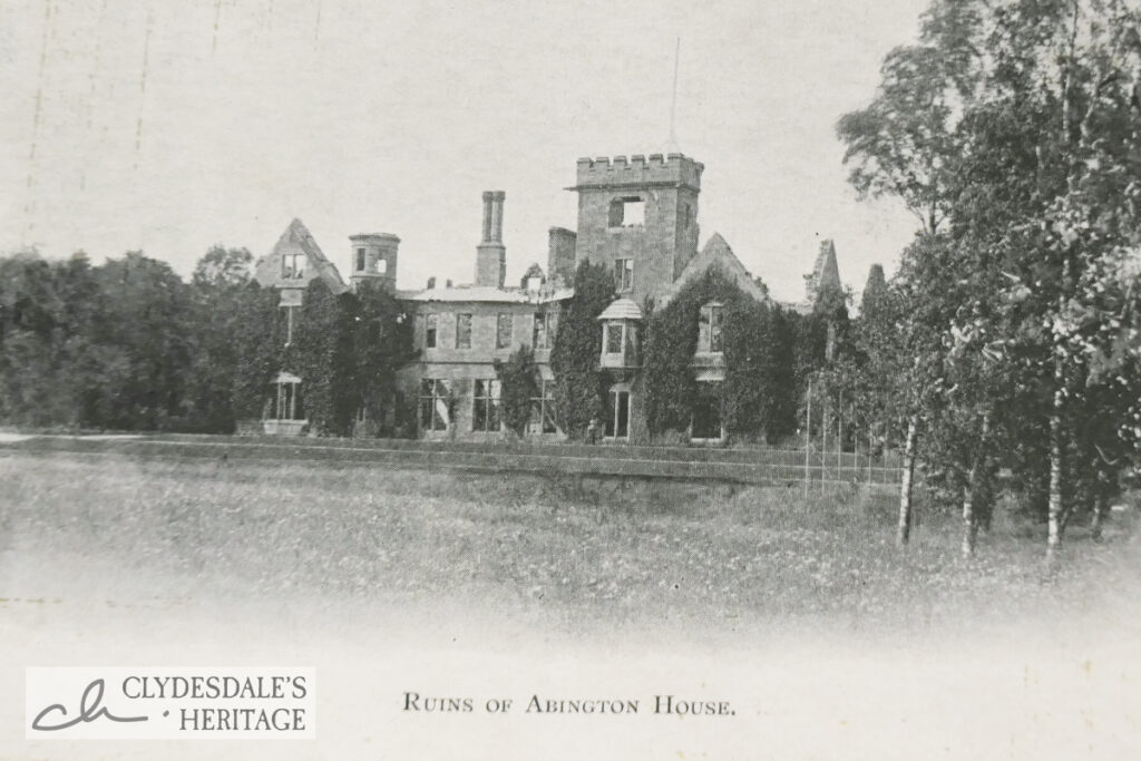 Abington House – the main country seat of the Colebrookes – was a substantial residence that had been extended and improved through the years, and as recently as 1884 had been substantially remodelled by noted architects Dick, Peddie & McKay. In October 1898 a fire broke out on the top floor of the house and gradually progressed through the rest of the building, giving time for most furniture and possessions to be saved. The damage was estimated to be £30,000, most of which was covered by insurance.