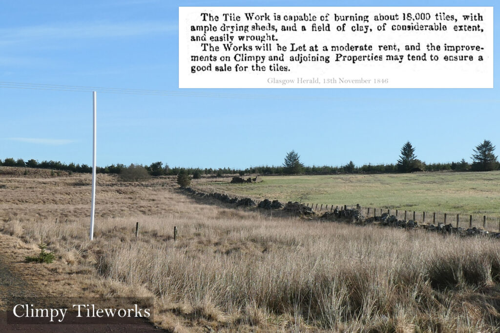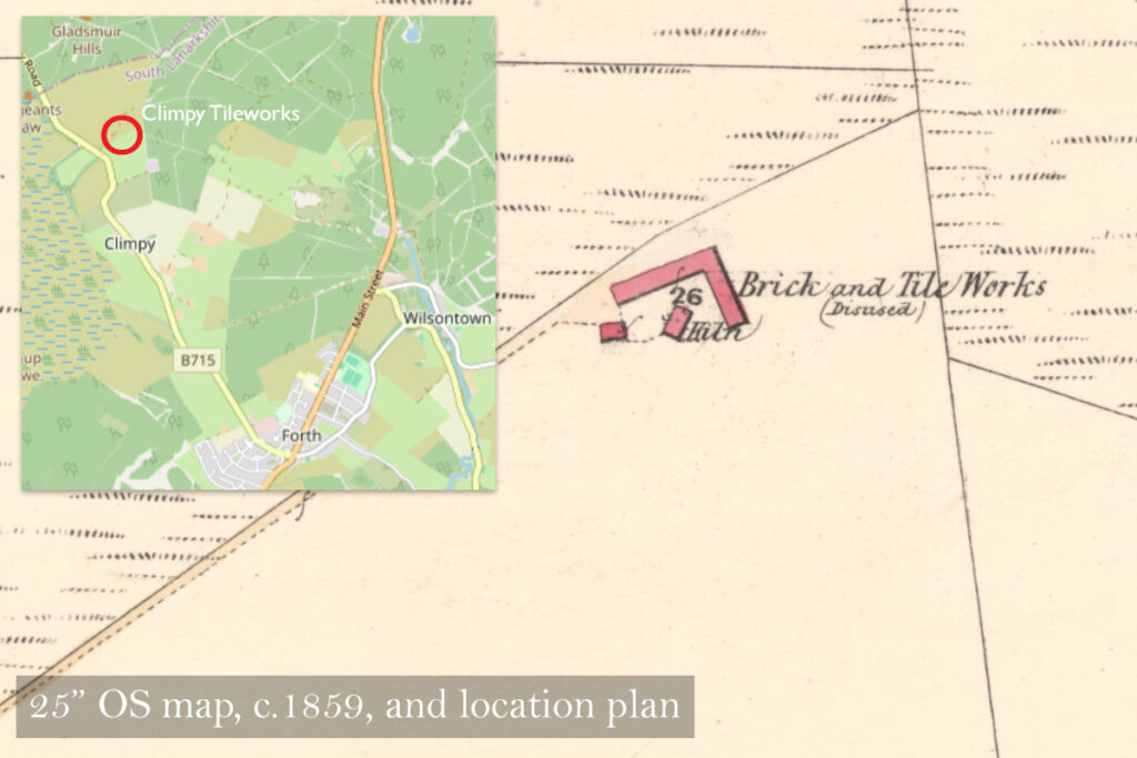 While other traces of the tile works disappeared, the little stone building seems to have remained intact and is shown on maps – as recently as the 1940’s – as an isolated roofed building, served by a footpath, Unfortunately we’ve found nothing more about what the building was used for, and have failed to find any local Jock, John or Joseph Shiels in any of the usual genealogical records.