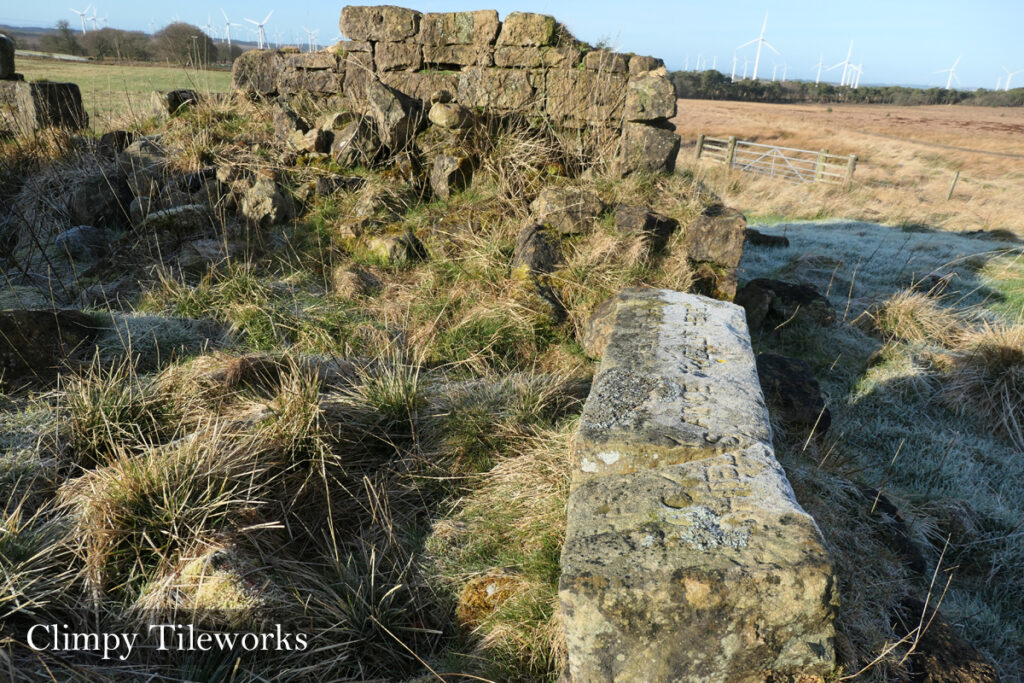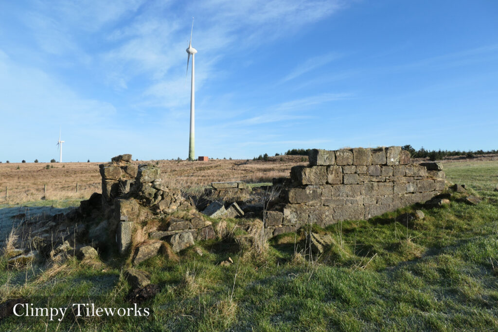 The building formed part of the Climpy tile and brick works, described in 1846 of: “capable of burning about 18,000 tiles with ample drying sheds and a field of clay of considerable extent and easily wrought”. The 1860 O.S. map describes the works as “disused” and shows the surviving stone building, along with a kiln and a long L-shaped building which was presumably a timber-framed drying shed. The remaining plant seems to have been sold off in 1859, consisting of “sheds, shelving, tile machine, clay mill, moulds, and also seven scores of black face ewes”. The surviving ruin would have been a sturdy little building, constructed from squared ashlar masonry and may perhaps have housed the clay mill or other machinery.