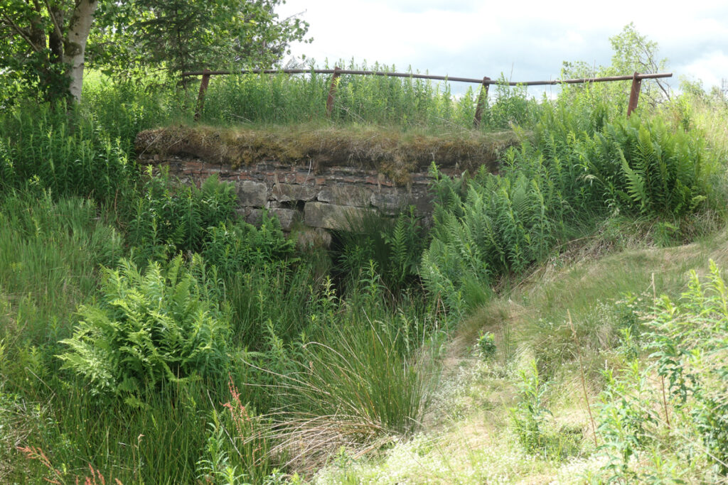 Photos of the row, taken from the south in July 2025, a mineshaft from the ironworks era has been made safe by the Coal Authority, and a bridge carrying the trackway or tramway, south of the rows