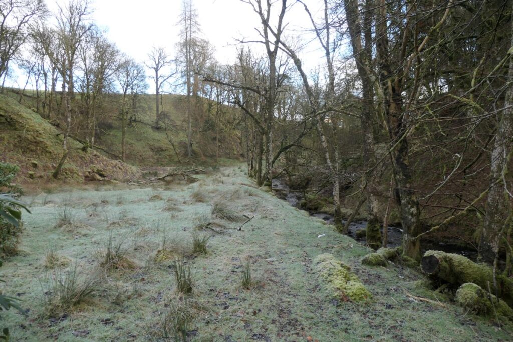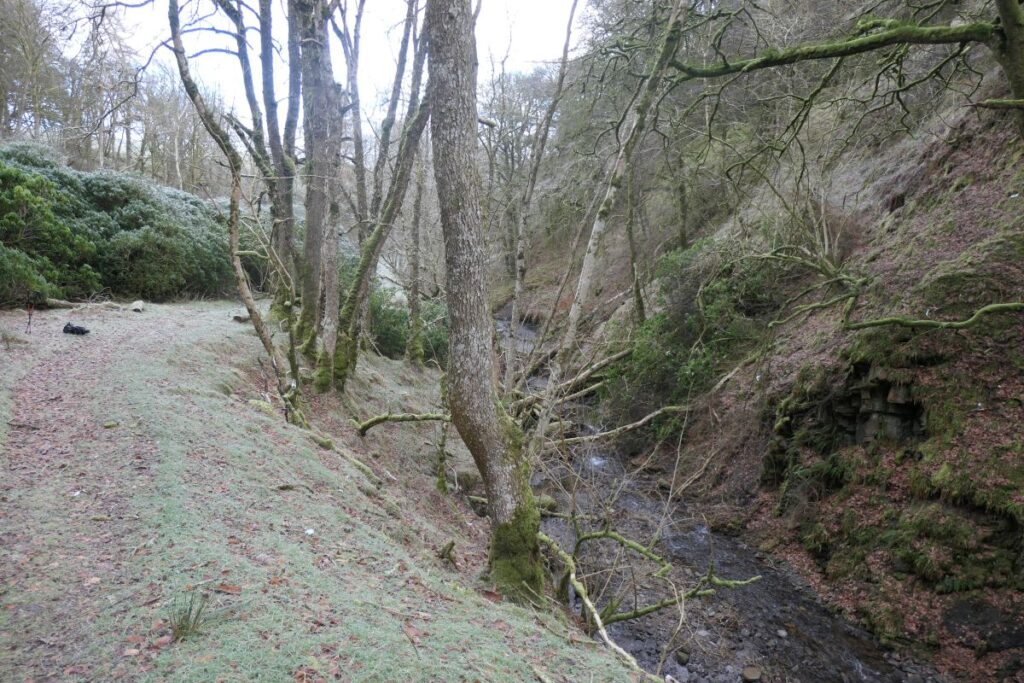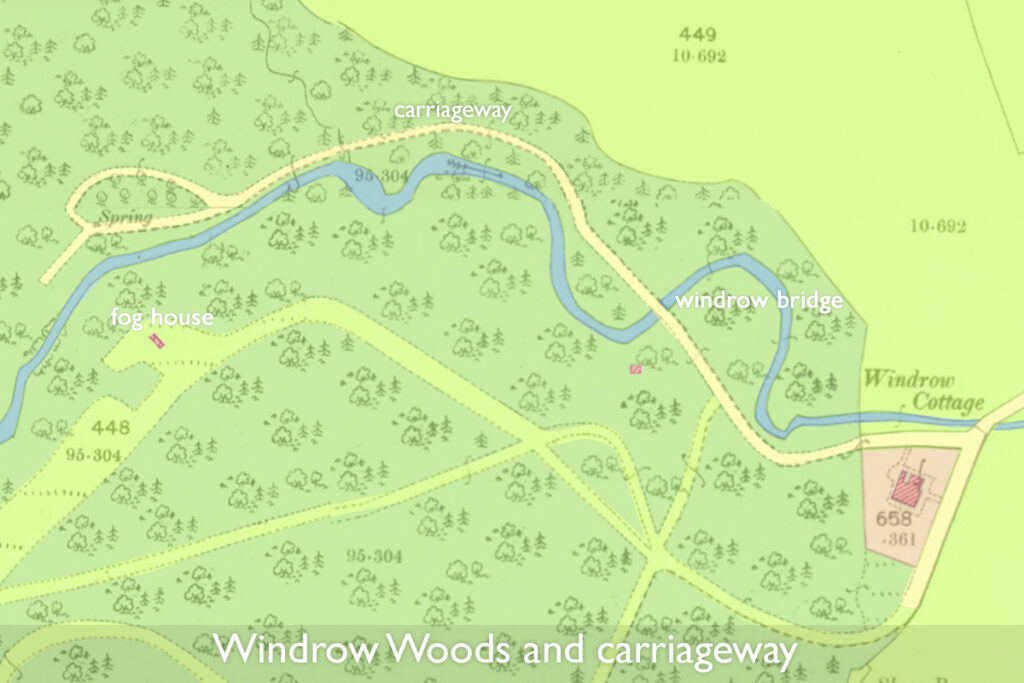 Windrow Wood is now a densely planted conifer plantation, making the site of the Fog-House difficult to access. The carriageway along the glen remains part of the footpath network, although much decayed and currently closed for forestry operations. Fine ash trees once lined much of the route beside the burn, but have been affected by disease and have been decimated by recent high winds.